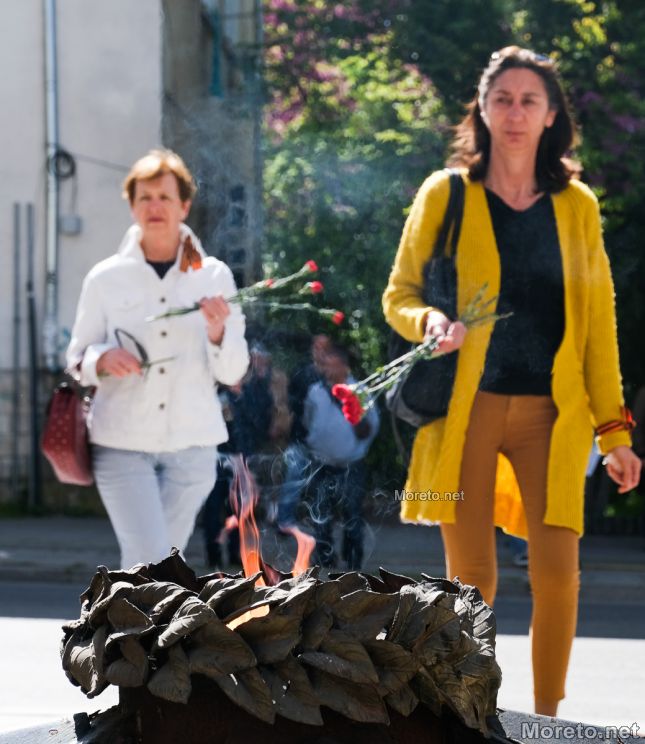 С полагане на цветя пред Паметника на Осми приморски полк започна честването на 9 май - Ден на победата над хитлерофашизма и Ден на Европа, предаде репортер на Moreto.net.