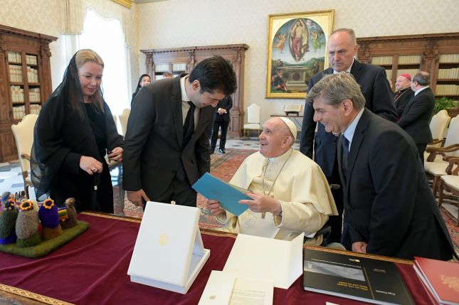 От своя страна папата е отвърнал със серия дарове, включително копие от тазгодишното Послание за мира, Документа за човешкото братство, книгата за Statio Orbis на 27 март 2020 г. и книга за Папския апартамент за аудиенциите, изготвена от Префектурата на папския дом. Светият отец е дарил също плакет от Понтификата.