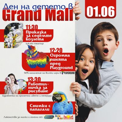 Бъдете в Деня на детето в Grand Mall, ет. 2, пред Playground, за да споделим радостта от детството!