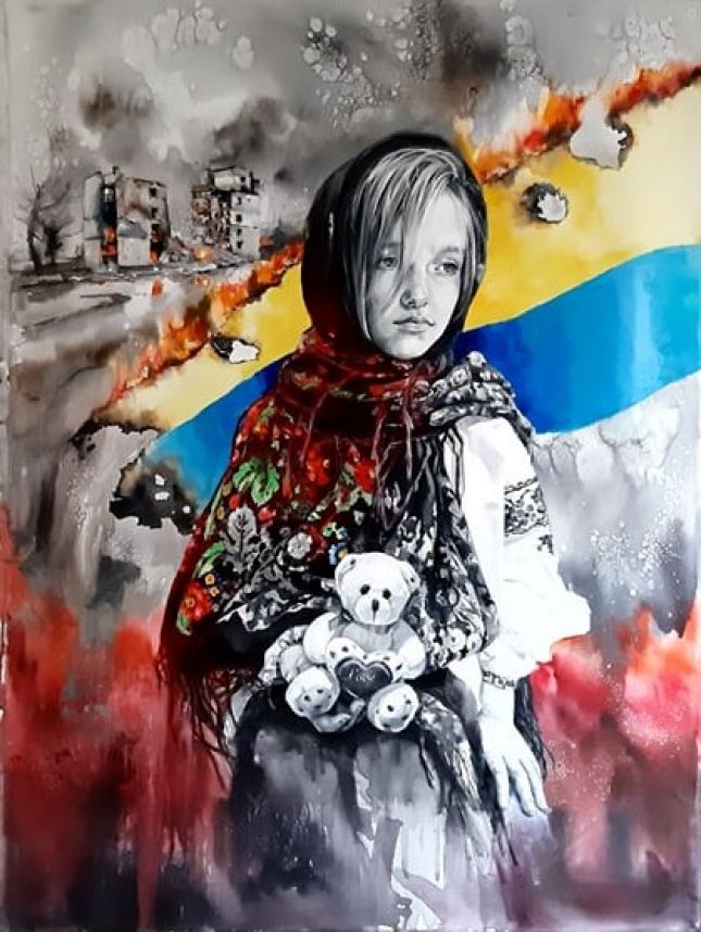 Алина Храпчинска от Харков изпраща от Банско планински и морски пейзаж, но и една носталгична картина с украинска църква. Нейната сестра Марина Доброволска рисува ефирни букети от полски цветя и звучни натюрморти. Нейна е и единствената картина в изложбата, която напомня за войната, но през образа на едно дете.
