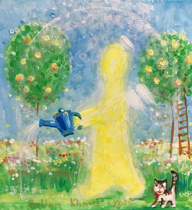 Алла Хмел показва градски пейзажи от Варна и Несебър с цъфтящи пролетни дървета. Нейната сестра Галина Хмел е нарисувала своята запазена марка - симпатични духчета - ангелчета, около които винаги се открива по едно намигване към бита. Двете сестри са подготвили и ефектни работи декоративно изкуство, които са авторски прочит на традиционната украинска петриковска живопис.