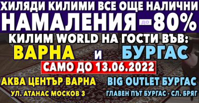 Остават само 6 дни до края на уникалната възможност за закупуване на килим на безценица. Килим Уърлд си тръгва от Варна на 13.06.