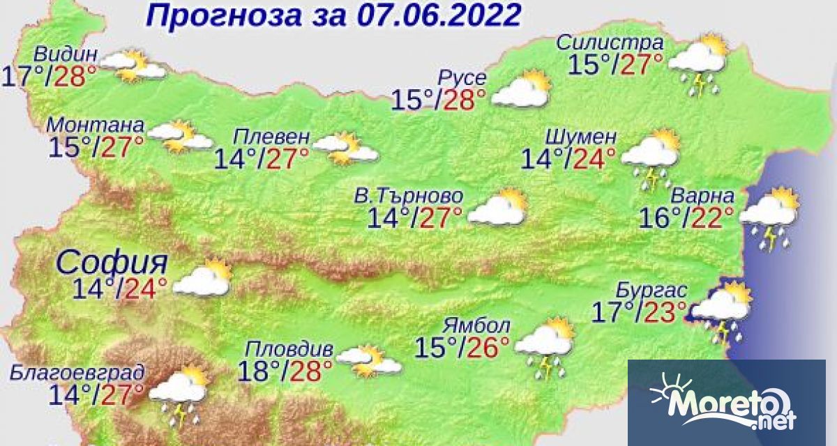 По Черноморието облачността временно ще се разкъса и намалее, като след обяд от север отново ще се увеличи. Ще духа слаб, по северното крайбрежие до умерен вятър от запад-северозапад. Максималните температури...