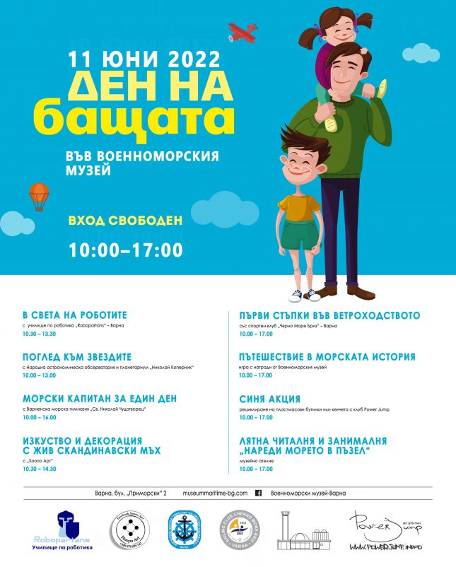 На 11 юни (събота) от 10:00 до 17:00 часа с вход свободен във Военноморския музей ще се проведе Ден на бащата, посветен на специалната връзка между таткото и детето, научи Moreto.net.