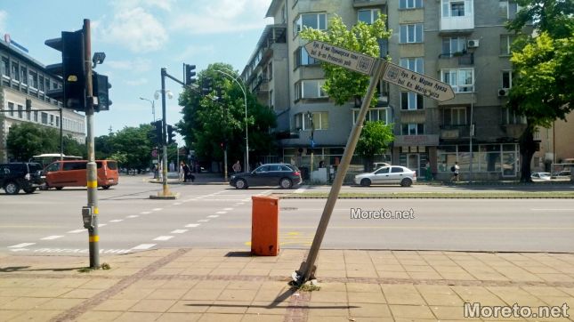Допълнение: Репортерска проверка на Moreto.net в сутришните часове на 14 юни показа, че опасният стълб е премахнат.