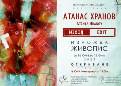 Арт галерия Le Papillon има честта и удоволствието да срещне почитателите на съвременното изобразително изкуство с творбите на талантливия художник Атанас Хранов, чието творчество със сигурност оставя следа в съзнанието на всеки, докоснал се до него.