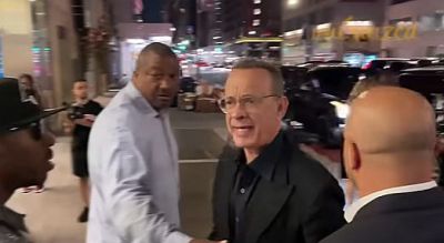 Докато излизат от ресторант и вървят към чакаща ги кола, Ханкс и Уилсън са приближени от фенове, които искат да си направят селфи с тях.