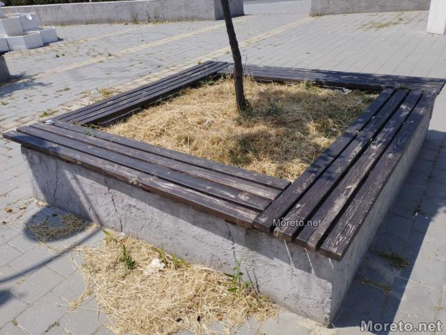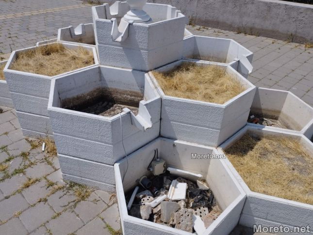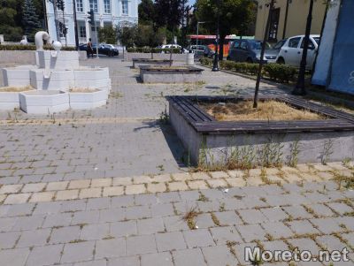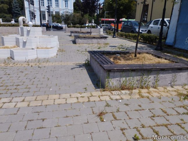 Мястото в централната част на града е с избуяла растителност между настилката, обелени пейки, изцяло изсъхнали зелени площи. Фонтанът в центъра не функционира. Цветарниците му и водните пространства са пълни със сухи треви, камъни и боклуци.