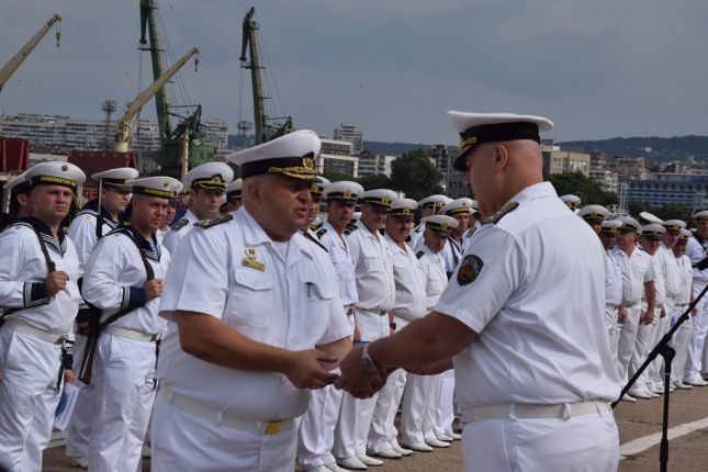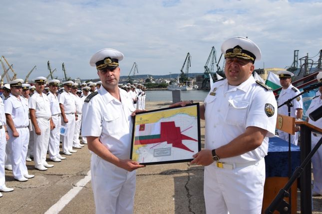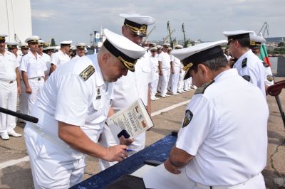 След като беше обявена заповедта за смяната, капитан І ранг Божидар Иванов и капитан II ранг Трифон Митишев подписаха акта за приемане и сдаване. Капитан І ранг Иванов се сбогува с личния състав, след което неговият вимпел беше спуснат.