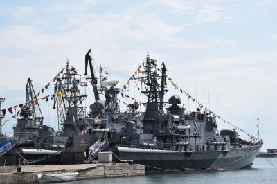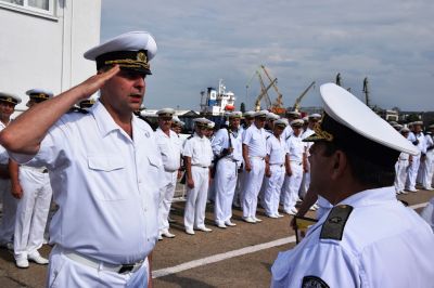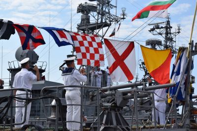 На пирса, пред сградата на щаба, се състоя военен ритуал за тържествено вдигане на военноморския флаг и флаговете за разцветяване на корабите от дивизиона.