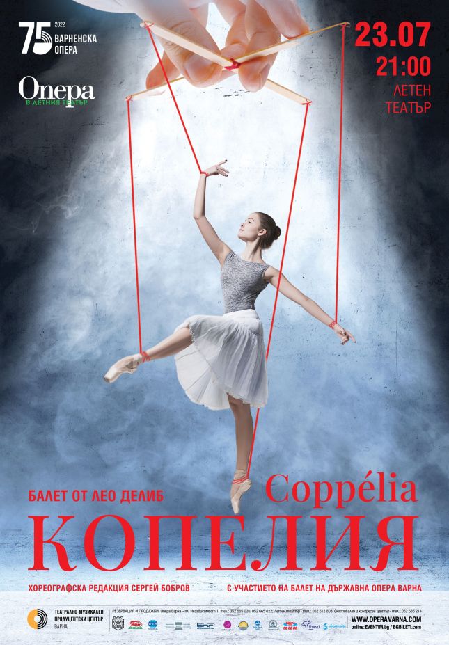 На 23 юли от 21.00 ч. в Летния театър балетната трупа на Държавна опера във Варна ще поднесе своята интерпретация на комичния балет „Копелия“ по музика на Лео Делиб, в хореографската редакция на Сергей Бобров от 2019 г., съобщават от ТМПЦ за Moreto.net.