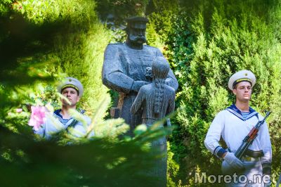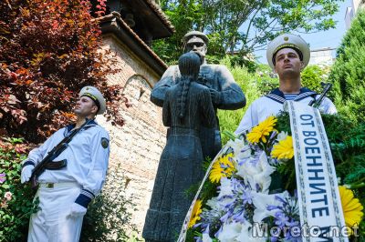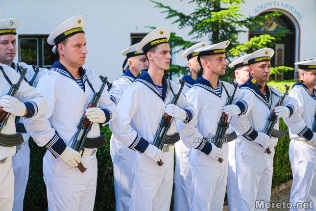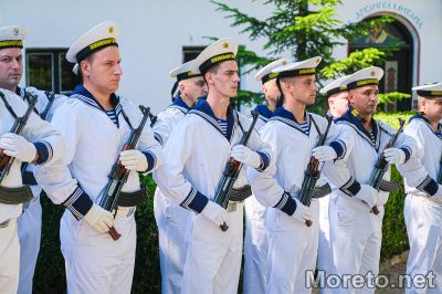 В общоградското поклонение взеха участие почетен караул и представителният духов оркестър на Военноморските сили.