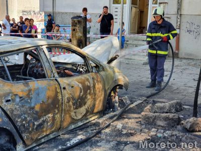 Електрически автомобил се запали на зарядна станция на ул. "Васил Друмев" до Двореца на културата и спорта, видя репортер на Moreto.net