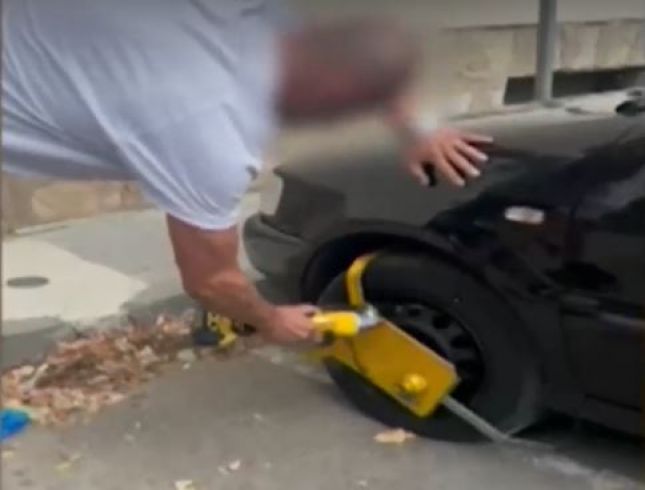 Мъж сряза демонстративно скобата на колата си, прибра я в багажника и потегли (видео)
