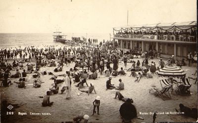 Сънят е вече развален и тръгваш пак за плажа. А там се повтаря вчерашното. Майки викат подир децата си, деца плачат, слугините крещят и ядосват госпожите си, надзирателките се карат на разголените жени и закопчават презрамките на банските им костюми, или ги вкарват зад паравана. (Защото от терасата мъжете с бинокли наблюдават женския плаж, а варненската община строго бди над морала на гостите си). Деца продават локум, вода и гевреци и всички представят стоката си, от терасата крещи високоговорителя с вечната Ерика, до ушите ти шумят пенливите вълни.