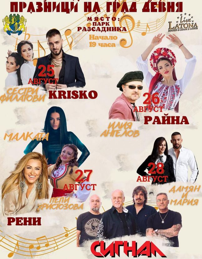 Цяло съзвездие от популярни изпълнители ще пристигне в града по покана на организаторите – Община Девня, съобщават от там за Moreto.net