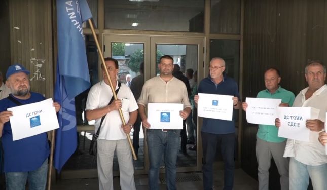 Привърженици на СДС, заедно с лидера Румен Христов, се събраха на знаковата сграда на ул."Г. С. Раковски" 134 в знак на протест.