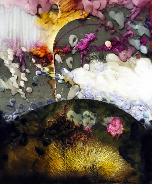 Ефирни, преливащи свободно един в друг цветни облаци, изграждат фантастични композиции. С поредната си изложба Стефан Хаджи-Николов отново ни приобщава към своя красив, изразен свят. Неговите живописни мандали приканват към съзерцание и смирение. И тогава отпуснатите ни сетива могат свободно да направят своите връзки, да „разчетат" ненатрапчивия алгоритъм, създаващ нова вселена от усещания. Тя е далеч от стресиращия медиен поток, от напрежението на ежедневието. Тя е живителен калейдоскоп, завихрящ плавно потоци светлина, пронизани от разноцветната палитра на авторовото цветоусещане. Танцуващите цветни петна се докосват нежно, преливат едно в друго или мощно избухват в колоритен фойерверк.