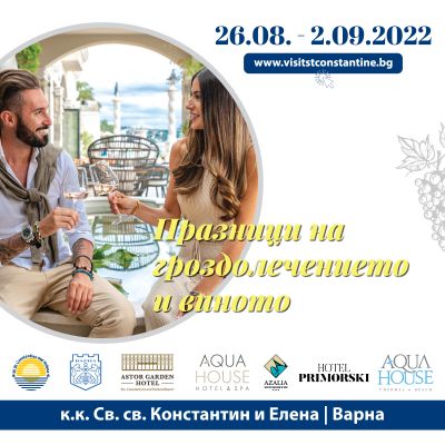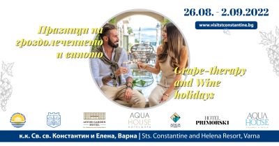 От 26 август до 2 септември в курорта Св. св. Константин и Елена ще се проведат традиционните празници на гроздолечението, виното и СПА терапиите с гроздови продукти. За пета поредна година първият български морски курорт ще предложи на своите гости да станат част от събитие, което има за цел да популяризира лечебните качества на винените терапии за красота, лице и тяло. Специалистите по физикална и рехабилационна медицина препоръчват процедурите да се правят в края на летния сезон.