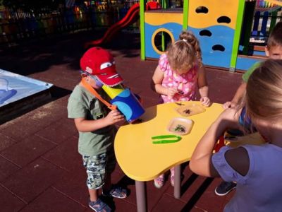 С нескрито любопитство и желание децата използваха закупените по проекта образователни продукти- жизнен цикъл на растенията, лаборатория за растения, декоративни насекоми в епоксидна смола, детски микроскоп, лупи, буркани за наблюдение на насекоми, комплект пластмасови пинсети за насекоми, книжки за растения и насекоми.
