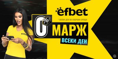 В своята спортна секция efbet вече предлага топ срещи с 0% марж - най-новото предложение на букмейкъра. Така в секция спорт всеки ден могат да бъдат намерени събития със завишени коефициенти за краен победител, от които могат да се възползват всички клиенти на efbet.com.