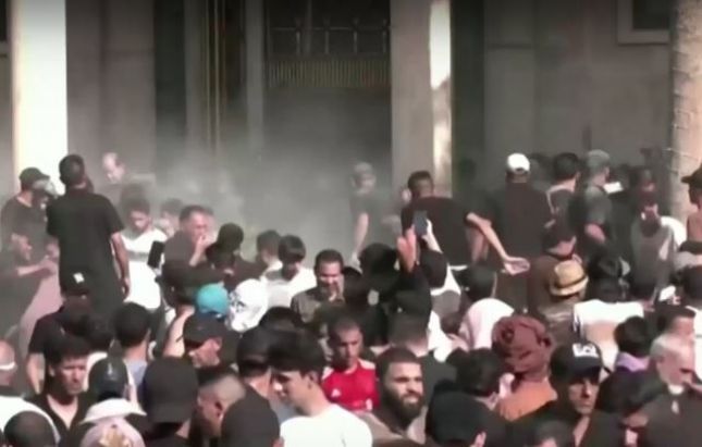 Протестиращи, верни на духовника Муктада Садр, който вчера обяви, че се оттегля от политиката, събориха с въжета бетонните заграждания пред правителствения дворец и нахлуха вътре през портала му. Мнозина от тях проникнаха в луксозните салони и мраморни зали на двореца, където иракското ръководство заседава и провежда срещи с чуждестранни високопоставени представители.