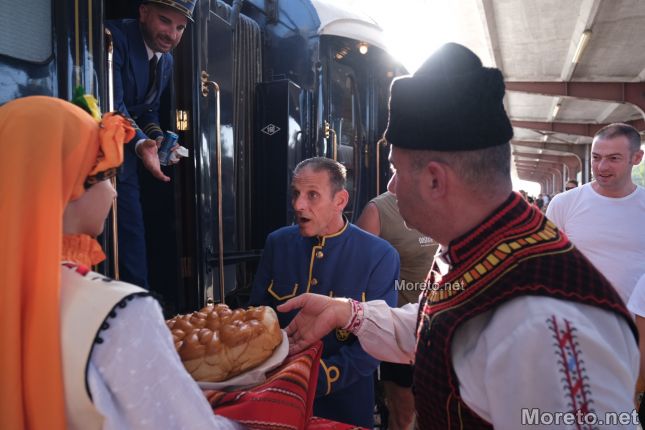 Стотици варненци и гости на града дойдоха на жп гарата в морската столица, за да видят и да се снимат с най-известния влак в света. По традиция пътниците бяха приветствани с питка и сол.