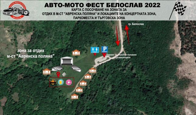 14:30 ч. - Официално откриване на мотосреща и рок концертв зона за отдих, в м-ст „АВРЕНСКА ПОЛЯНА“ – Белослав.