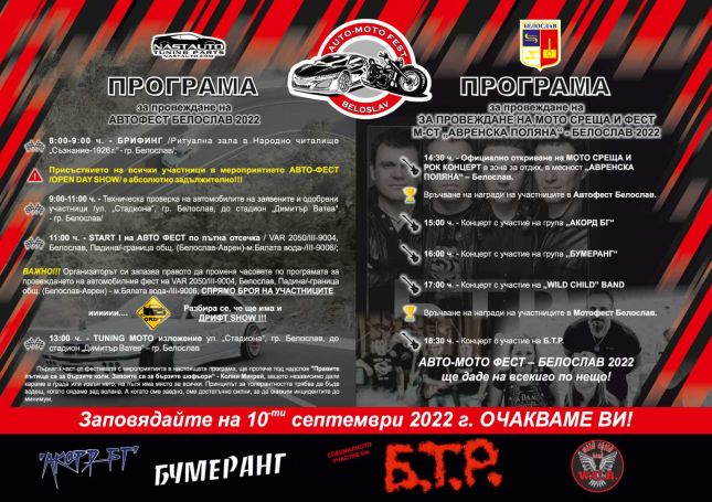 Авто-мото фест ще се проведе в Белослав на 10 септември (събота), съобщават организаторите за Moreto.net.