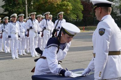 , се обърна към младите курсанти началникът на ВВМУ – флотилен адмирал проф. д.в.н. Боян Медникаров, и им пожела да бъдат упорити и уверени в себе си.