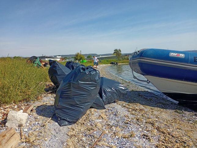 Морски клуб “Приятели на морето” - Варна заедно с 13 доброволци събраха над 40 чувала с боклук от труднодостъпни места по брега на Варненското езеро.