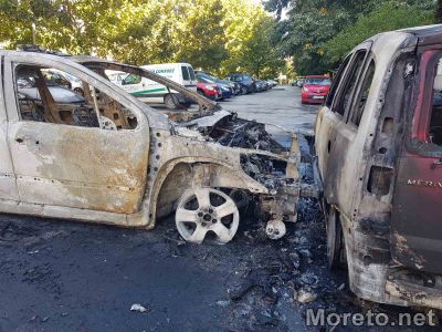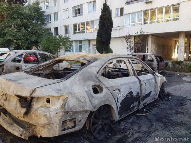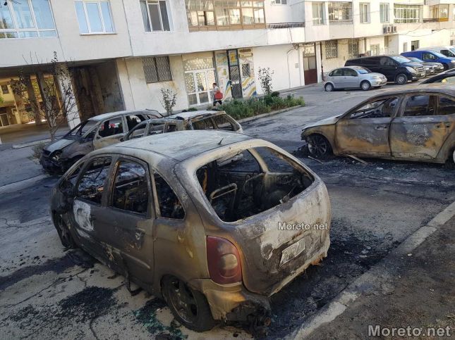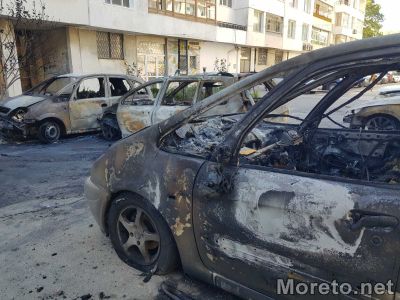 Пет автомобила са изгорели при пожар, станал през изминалата нощ на паркинг пред блок 67 в кв. "Чайка" във Варна, видя репортер на Moreto.net