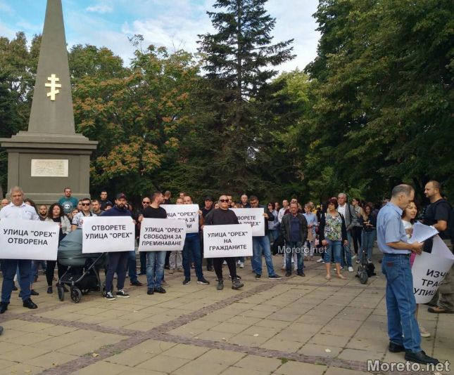 Над 150 души се включиха в протеста за отварянето на ул. „Орех“ във Варна, който се проведе тази сутрин пред сградата на Община Варна, предаде репортер на Moreto.net.