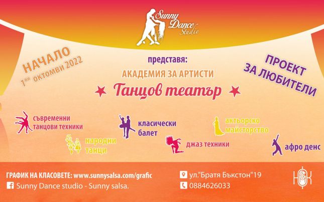 Вие сте млади таланти и искате да развиете своите артистични качества. Каним Ви в Академия за Артисти "Танцов театър".