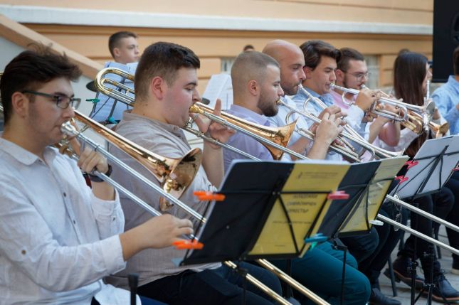 В програмата ще прозвучат любимите класически пиеси “В пещерата на горския цар” от Едвард Григ, “Кан кан” на Жак Офенбах, “Марш на Тореадора” от Жорж Бизе, хумористичните народни песни “Баба винце пила” и “Лечко стъпяй”, фолклорните стандарти “Ръченик” и “Буенек”, безсмъртният “Рагтайм” на Скот Джоплин, маршовете “Привет, музиканти” и “Да отседнем в Риц”, както и специални музикални изненади, подготвени от групата на ударните инструменти.