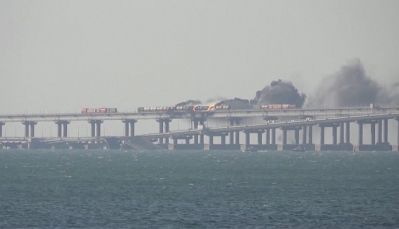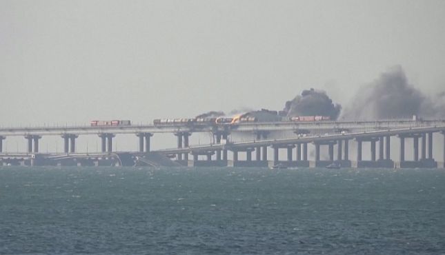 Експлозия, пожар и частично срутване на Кримския мост.