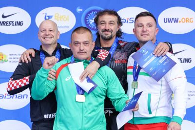 Българинът взе отличието в категория до 100 кг на класическия стил в дивизия Д (до 55 г.), след като на финала победи с технически туш 9:0 за 43 секунди Иво Смърке (Хърватия).