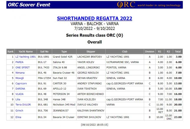 Ясни са победителите на завършилата във Варна Shorthanded Regatta 2022, съобщават за Moreto.net организаторите на спортната проява.