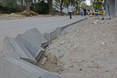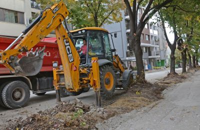 Извършват се дейности по изграждане на нови тротоари и се подменя уличното осветление по цялата дължина на трасето - от бул. „Христо Смирненски“ до бул. „В. Левски“.