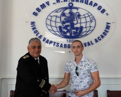 Началникът на ВВМУ „Н. Й. Вапцаров“ – флотилен адмирал проф. д.в.н. Боян Медникаров, отличи първокурсника Станислав Иванов от специалност „Национална сигурност“.