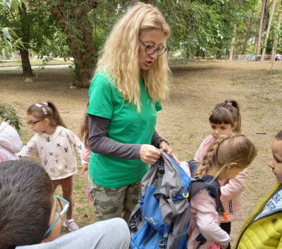 В урока се включиха всички възпитаници на детската градина. Те имаха възможност да опитат тежестта на туристическата раница и ходенето с щеки, както и какво означава да се ориентират по карта и компас. Горските педагози бяха подготвили пълно туристическо оборудване, като по този начин показаха на практика какво е нужно, за да бъде всеки поход безопасен.