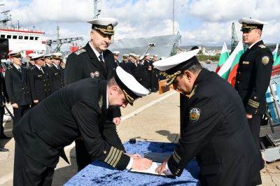 След подписването на акта за сдаване и приемане на длъжността, командирът на Флотилията флотилен адмирал Велков поздрави новия командир и му пожела да съхрани своята неизчерпаема енергия, ентусиазъм, професионализъм и мотивация за непрекъснато усъвършенстване.