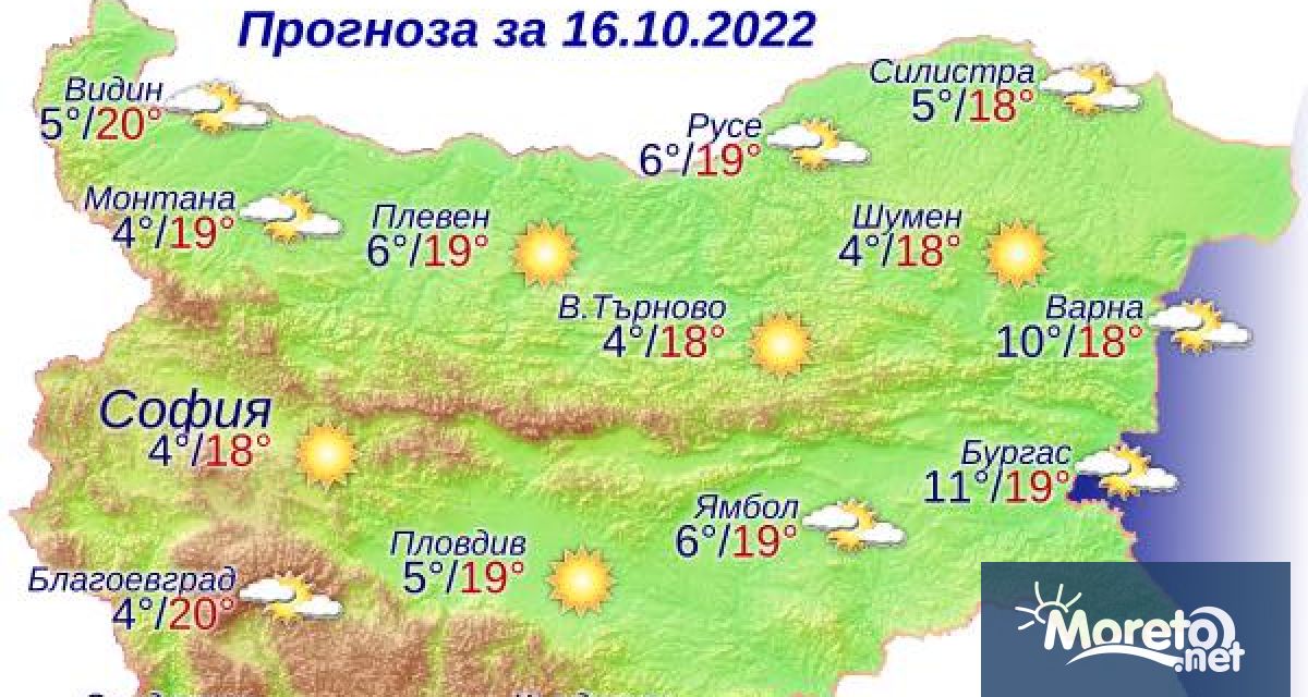 Над Черноморието ще бъде предимно слънчево с до умерен североизточен вятър. Максимални температури: 16°-19°. Температурата на морската вода е 18°-19°. Вълнението на морето ще бъде 3-4 бала.