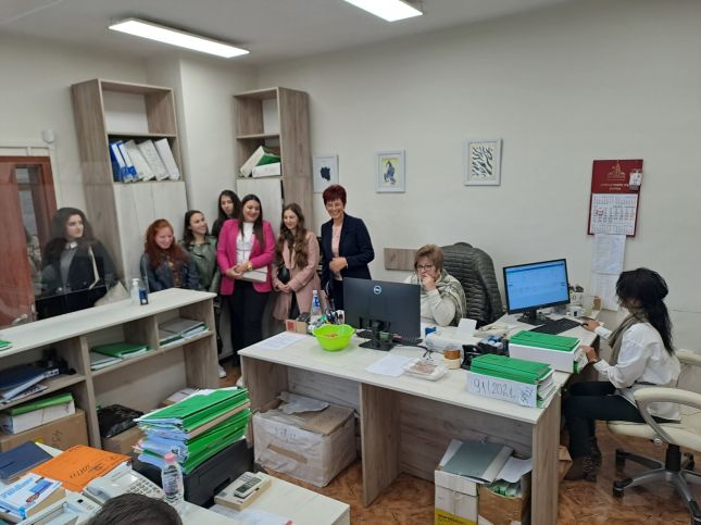 Студентите се интересуваха от възможностите за стаж и за кандидатстване за работа в съдебната система, от перспективите за развитие. Бъдещите ни колеги разгледаха помещенията, в които се трудят съдебните деловодители и секретарите.