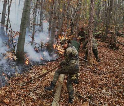 67 военнослужещи със специализирана техника участват в гасенето на пожара, възникнал в землището на с. Мокрен, Сливенско, където огънят е обхванал смесена гора.