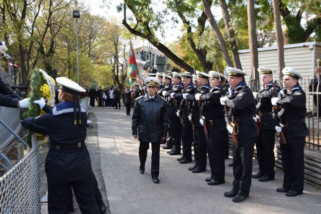 Пред пред Военноморския музей строят на почетния караул от състава на Флотилия бойни и спомагателни кораби и Военноморска база Варна беше приет от заместник-командира на Военноморските сили флотилен адмирал Георги Пенев.