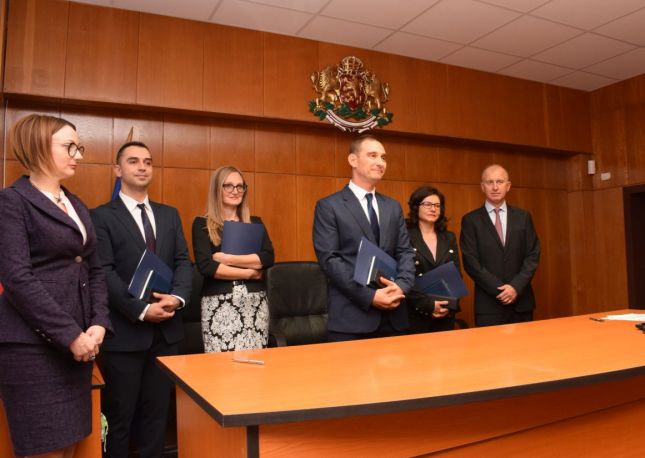 Четиримата подписаха актове за встъпване в длъжност пред председателя на съда Марин Маринов и останалите окръжни съдии. Магистратите ще правораздават в Гражданско отделение.