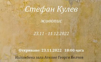 Изложба живопис на Стефан Кулев се открива днес от 18.00 ч. в Зала „Ателие Георги Велчев“ на Художествения музей „Георги Велчев“, филиал на Градската художествена галерия “Борис Георгиев” - Варна.