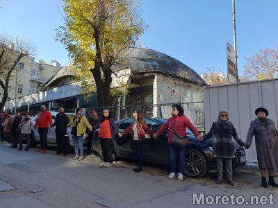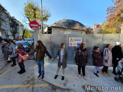 Десетки граждани извиха жива верига около "Гъбата" заради предстоящото събаряне на емблематичната баня и вдигането на 12-етажна сграда, предаде репортер на Moreto.net. Преди това те се събраха на площад "Севастопол".