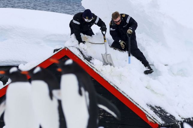 Екипаж моряци и морски пехотинци от британския военноморски кораб "Протектър" са изринали няколко тона сняг и са ремонтирали част от засегнатите постройки.